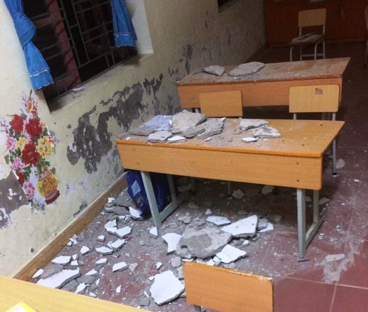 Trước đó, 16h30 chiều ngày 26/11, trong lúc cô và trò lớp 1C đang chuẩn bị ra về thì bất thình lình cả mảng vữa lớn trên trần nhà rơi trúng 3 học sinh khiến các em phải đi cấp cứu.