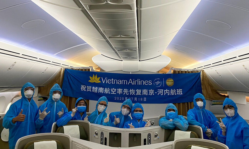 Sáng 18/7, chuyến bay này đón 275 khách Trung Quốc từ London, quá cảnh tại Hà Nội, sau đó bay tiếp đi Nam Kinh. Theo đại diện Vietnam Airlines, đây là chuyến bay chở khách đầu tiên của hàng không Việt Nam đến thị trường Trung Quốc sau khi dừng khai thác từ đầu tháng 2.