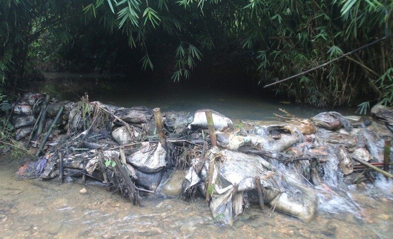 Con suối Khại dẫn nước cho nhà máy nước sạch Sông Đà (xã Phú Minh, Kỳ Sơn, Hòa Bình) bị nhiễm bẩn do dầu thải đổ vào đầu nguồn.