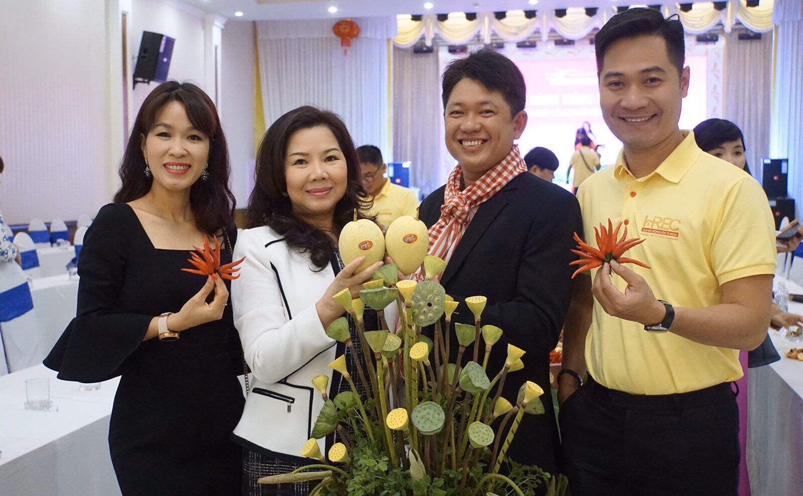 Các Doanh nghiệp trong Đoàn Caravan HREC thích thú bên sản phẩm sen và trái cây đặc sản Đồng Tháp trưng bày tại Hội nghị.