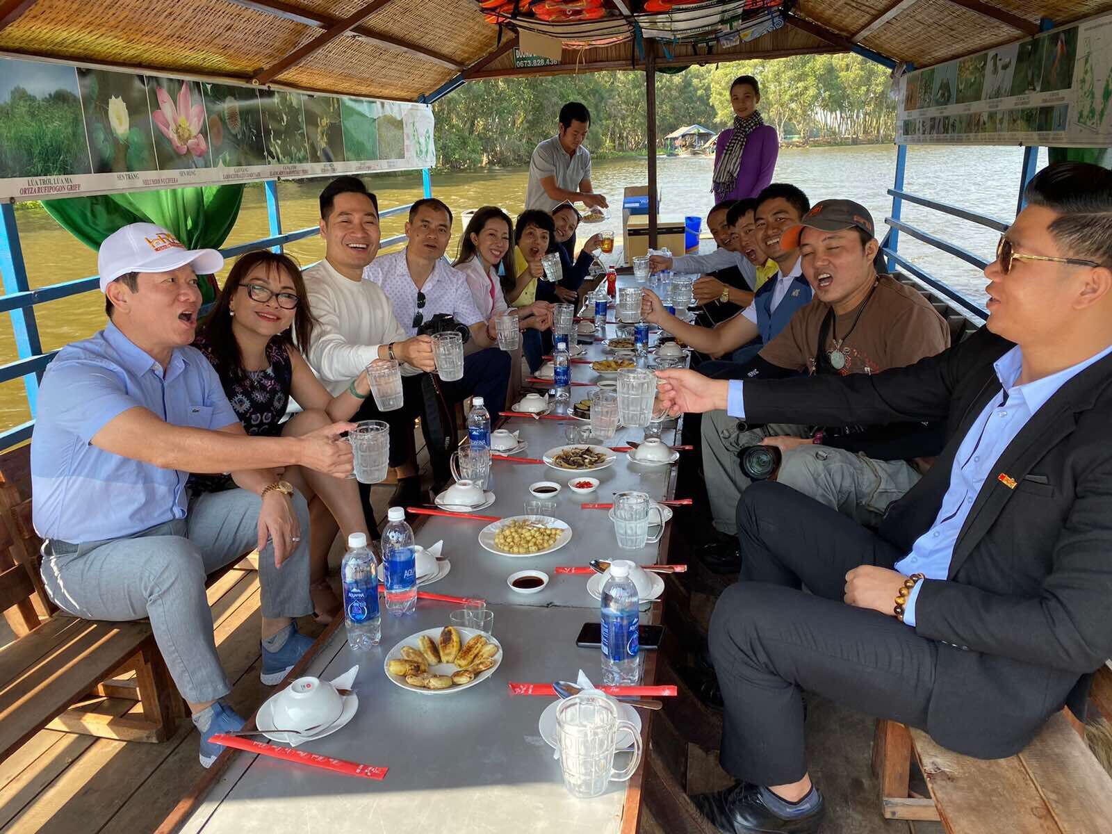 Đoàn Caravan tham quan và thưởng thức ẩm thực tại Vườn Quốc gia Tràm Chim (huyện Tam Nông, tỉnh Đồng Tháp).