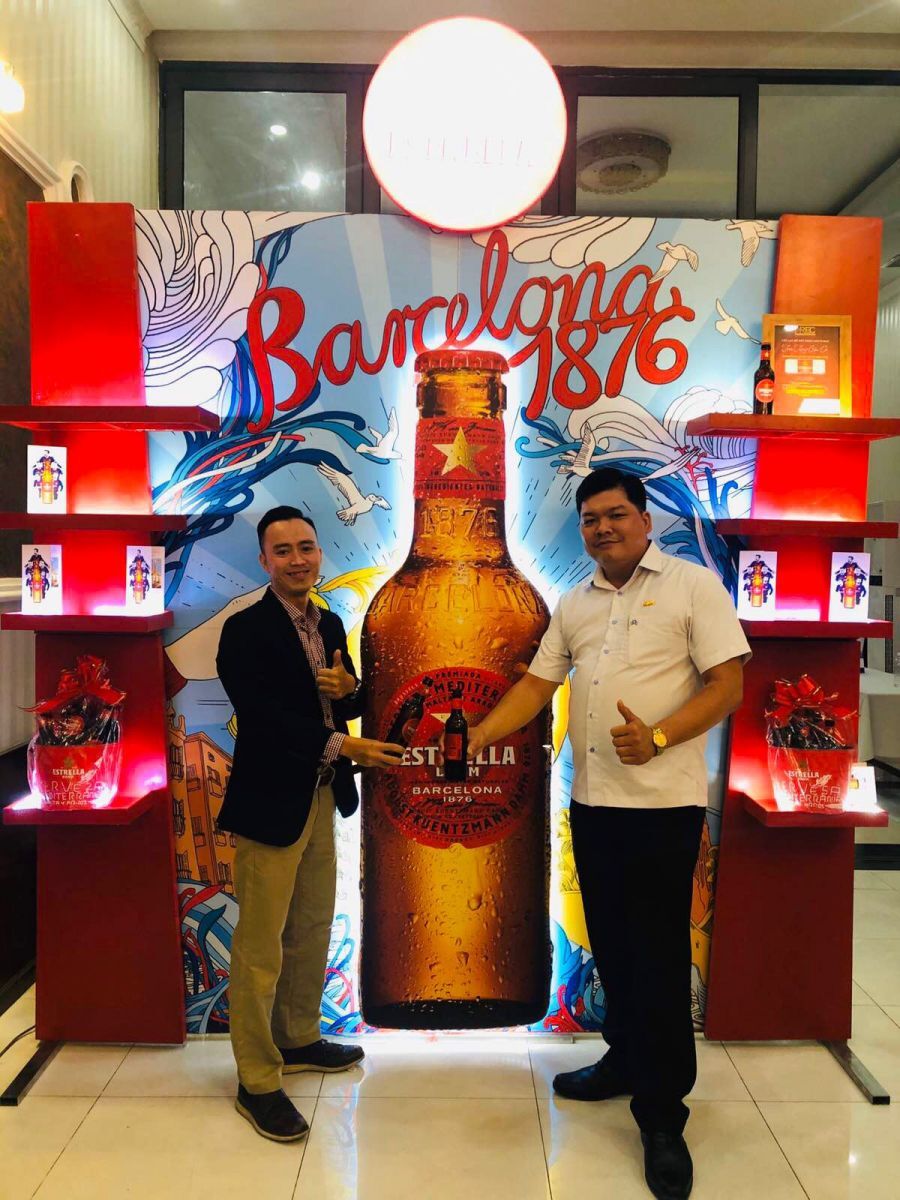 Ông Võ Minh Phúc - Giám đốc Thương hiệu Hãng bia Estrella (bên trái) - Nhà tài trợ bia cho chuyến Hành trình Caravan HREC suốt 3 ngày ...