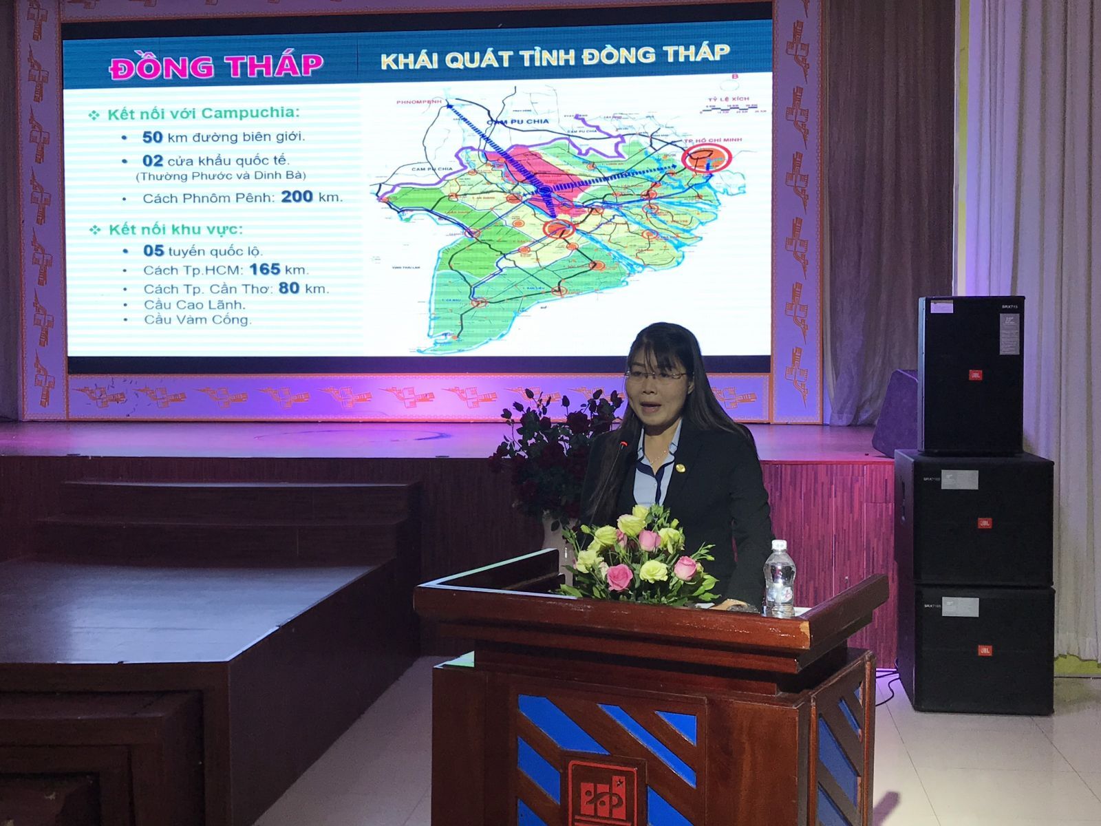 Bà Phạm Thị Ngọc Đào - Phó GĐ Sở Kế hoạch & Đầu tư tỉnh Đồng Tháp thông tin tại Hội nghị các Dự án tiềm năng đang kêu gọi đầu tư của tỉnh Đồng Tháp.