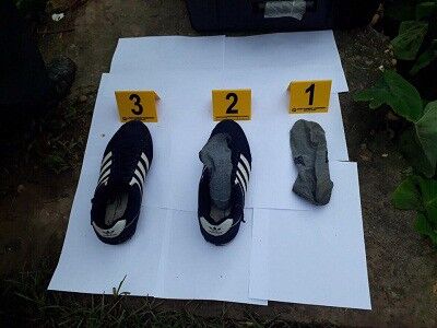Cùng ngày, cơ quan điều tra phát hiện giày và tất nghi của hung thủ ở gần ngôi nhà xảy ra án mạng, qua đó xác định đối tượng này đi giày cỡ khoảng 40 - 41 (cỡ Việt Nam) nhãn hiệu Adidas màu tím than, mỗi bên má giầy có ba sọc trắng, vùng cổ giầy có viền trắng bao quanh; đi tất cổ ngắn màu xám.