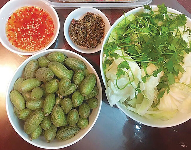 Bắp cải cuốn nhót xanh.