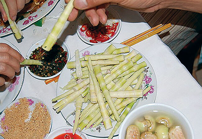 Măng đắng là sản vật và là món ăn rất phổ biến của người Điện Biên. Với măng đắng, người ta có thể chế biến thành nhiều món ăn hấp dẫn như xào, luộc, nướng, hầm xương. Đơn giản nhất là món măng đắng chấm với chẩm chéo khiến nhiều người mê mẩn.