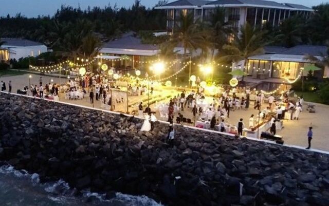 Toàn cảnh lễ đính hôn tại bãi biển của Nhã Phương và Trường Giang. Ảnh: Soha.