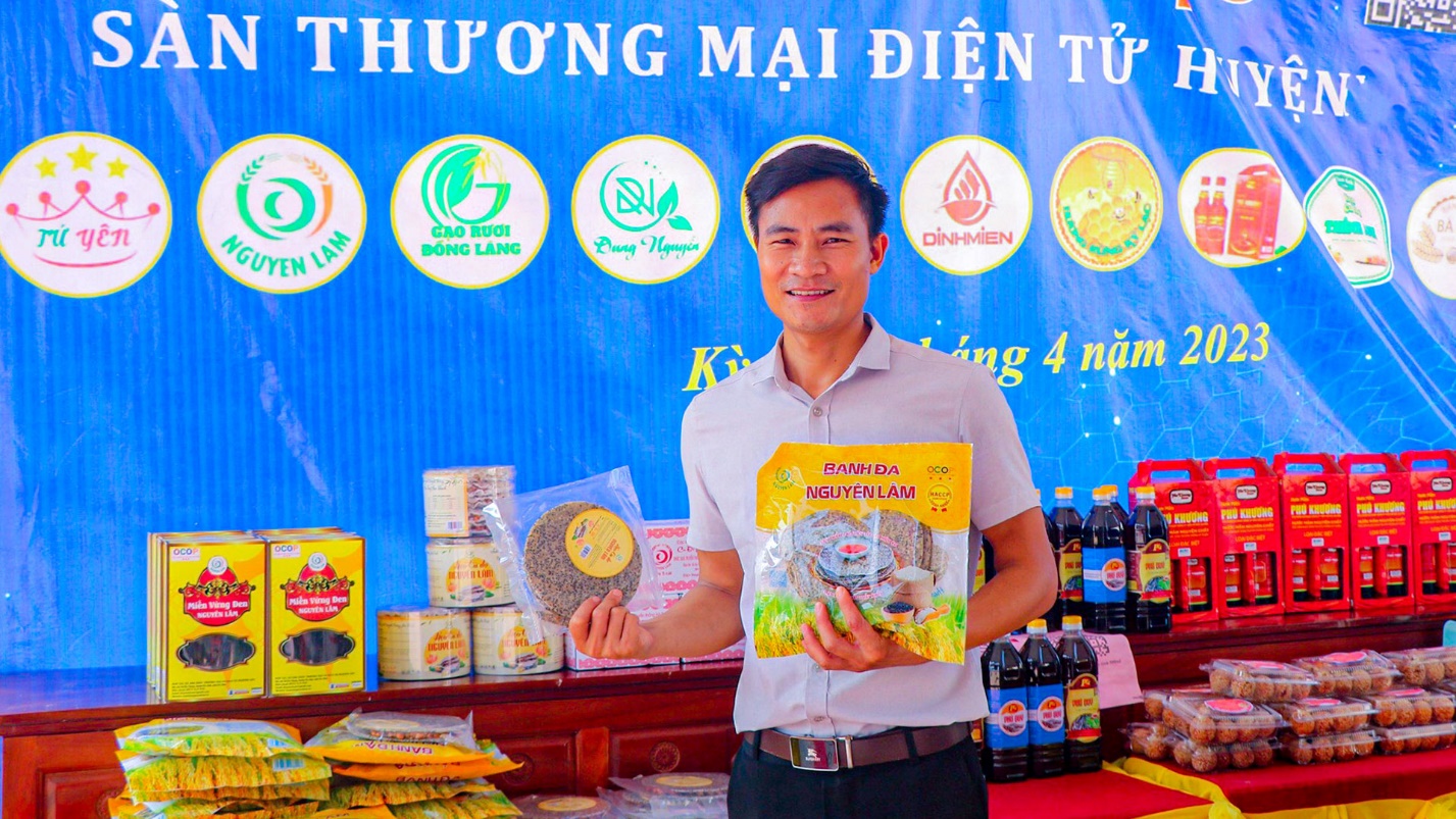 Anh Lê Văn Duẩn - Giám đốc HTX Nguyên Lâm giới thiệu sản phẩm tại trên sàn thương mại điện tử năm 2023