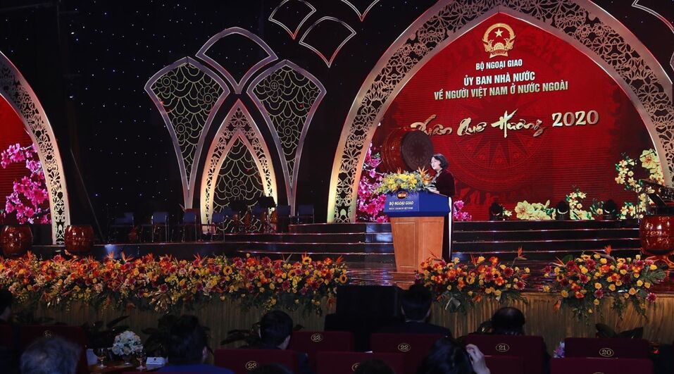 Trong không khí sum họp, đầm ấm nhân dịp Xuân mới, chào đón Tết Nguyên đán Canh Tý 2020, tối 18/1, tại Trung tâm Hội nghị quốc gia Việt Nam (Hà Nội), Ủy ban Nhà nước về người Việt Nam ở nước ngoài (Bộ Ngoại giao) chủ trì, phối hợp Ủy ban Nhân dân thành phố Hà Nội, Ủy ban Nhân dân tỉnh Bắc Ninh và các bộ, ngành liên quan, tổ chức chương trình nghệ thuật “Xuân Quê hương 2020.”