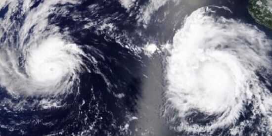 Hai cơn bão lớn tới gần nhau có thể va chạm hoặc biến thành một 1 siêu bão. Ảnh minh họa.