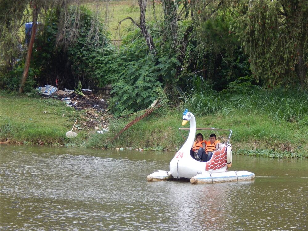 Mặt hồ tồn đọng quá nhiều rác khiến du khách không thể đạp vịt hết hồ. Ảnh: Hoàng Tỷ