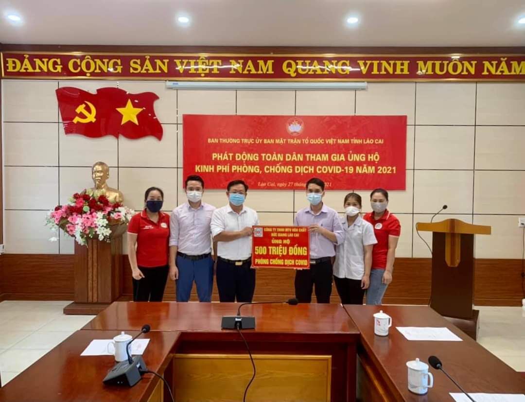Bên cạnh đó, Công ty TNHH MTV hóa chất Đức Giang còn thực hiện rất tốt vai trò và trách nghiệm của mình đối với xã hội được thể hiện qua các hoạt động an sinh xã hội và đóng góp cộng đồng như: Ủng hộ quỹ phòng chống dịch Covid-19 số tiền 500 triệu đồng; ủng hộ quỹ vacxin phòng chống dịch Covid-19 số tiền 1,2 tỷ đồng; hỗ trợ nguồn lực chống dịch của Hội chữ thập đỏ tỉnh Lào Cai 30 triệu đồng; đóng góp vào quỹ phòng chống thiên tai hàng năm 270 triệu đồng; ủng hộ quỹ bảo trợ trẻ em 50 triệu đồng; ủng hộ tết vì người nghèo, nông thôn mới 30 triệu đồng; ủng hộ chương trình "Sóng và máy tính cho em” 300 triệu đồng; ủng hộ công tác PCCC&CNCH tại địa phương 40 triệu đồng; ủng hộ xây dựng phân hiệu trường mầm non Tằng Loỏng 1,3 tỷ đồng; ủng hộ, động viên các cán bộ y tế Lào Cai đi chống dịch tại miền nam 50 triệu đồng đóng góp kinh phí di chuyển 113 hộ dân Tằng Loỏng (1 trong số doanh nghiệp đóng đầy đủ, sớm nhất theo phân bổ) với chi phí lên tới 15 tỷ đồng.