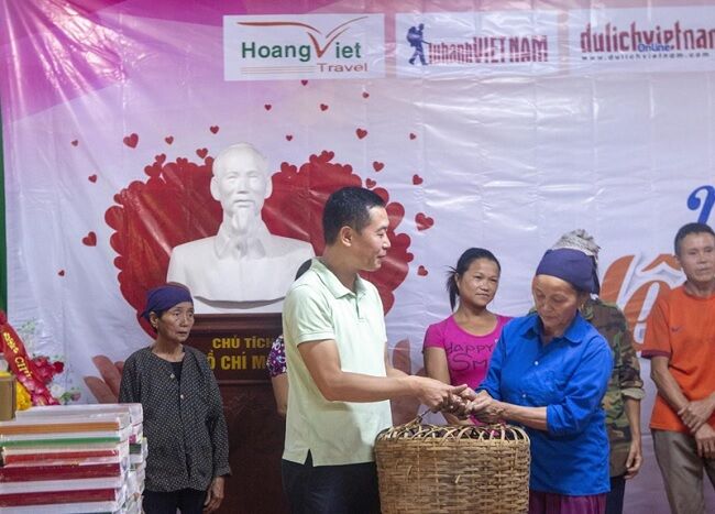 Doanh nhân Vũ Quyết Thắng trao quà cho đồng bào nghèo miền núi