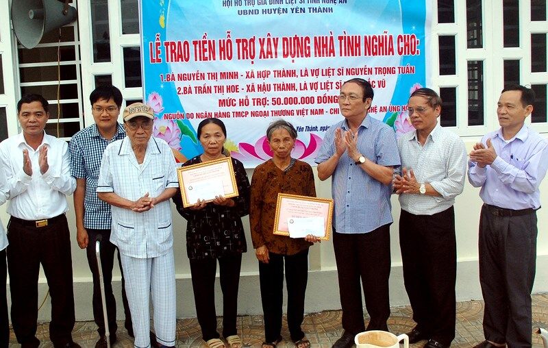 Trân trọng và biết ơn những công lao to lớn ấy, những năm qua cùng với việc xây dựng quê hương ngày càng giàu mạnh, huyện Yên Thành luôn thực hiện tốt công tác đền ơn đáp nghĩa; tập trung mọi nguồn lực chăm lo các gia đình chính sách, người có công với cách mạng. Với đạo lý “Uống nước nhớ nguồn”, các cấp, các ngành đã có nhiều chương trình hành động trong phong trào “Đền ơn đáp nghĩa” như: đóng góp vào Quỹ đền ơn đáp nghĩa; sửa chữa, làm mới nhà tình nghĩa tặng cho gia đình chính sách có hoàn cảnh khó khăn; tặng sổ tiết kiệm tình nghĩa; tu sửa đài tưởng niệm liệt sỹ, nghĩa trang liệt sỹ.v.v…