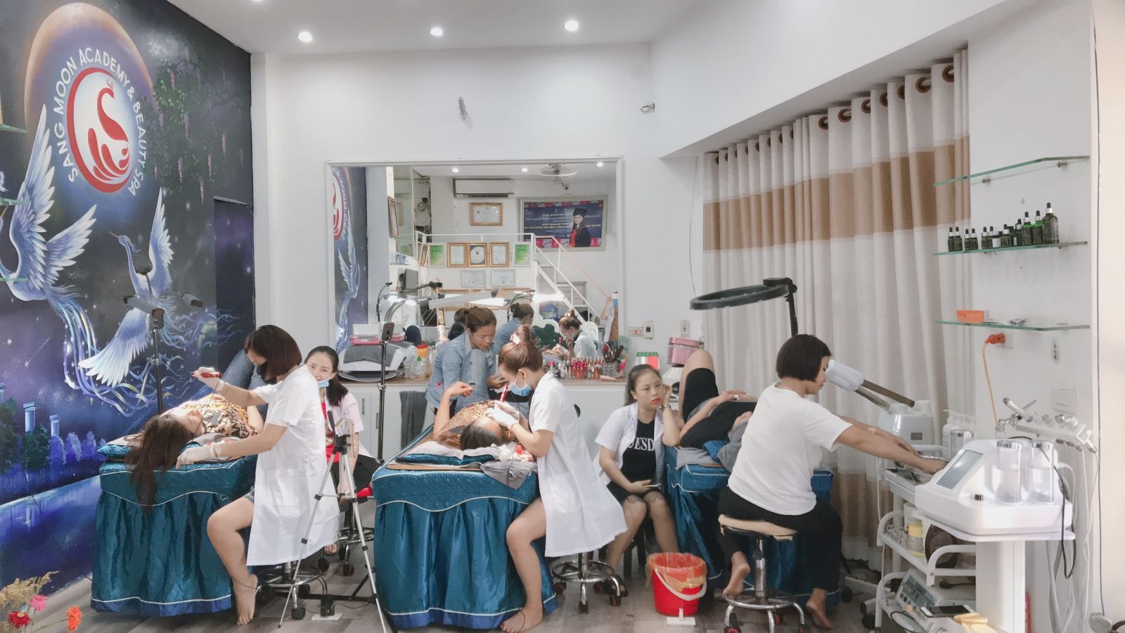 Quả thật, chỉ một lần đến với cơ sở của Học viện thẩm mỹ Sang Moon đều thấy đông đảo các học viên đang chăm chú xem CEO Thu Sang hướng dẫn bằng sự điêu luyện và tập trung cao độ. Với môi trường bải bản, giáo trình chuyên nghiệp và thời gian đào tạo khoa học, hiệu quả, mỗi năm đã có hàng trăm học viên tốt nghiệp tại Sang Moon Academy và nhanh chóng thành danh tại những cơ sở làm đẹp của riêng mình trên cả nước.