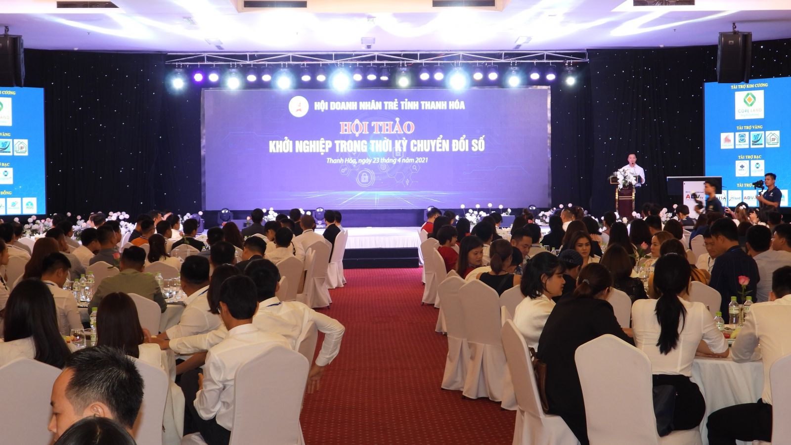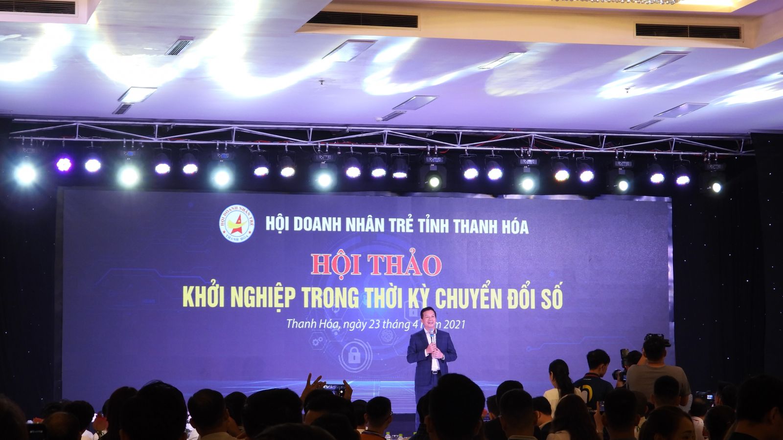 Chiều 23/4/2021, Tại Hội trường lớn Khách sạn Mường Thanh (Thanh Hóa), Hội doanh nhân trẻ tỉnh Thanh Hóa tổ chức Hội thảo “Khởi nghiệp trong thời kỳ chuyển đổi số”. Dự hội thảo có lãnh đạo Phòng Thương mại và Công nghiệp Việt Nam (Chi nhánh Thanh Hóa), các tổ chức, hiệp hội doanh nghiệp trên địa bàn, các doanh nghiệp cung ứng dịch vụ chuyển đổi số và kinh doanh bất động sản lớn trên địa bàn tỉnh.