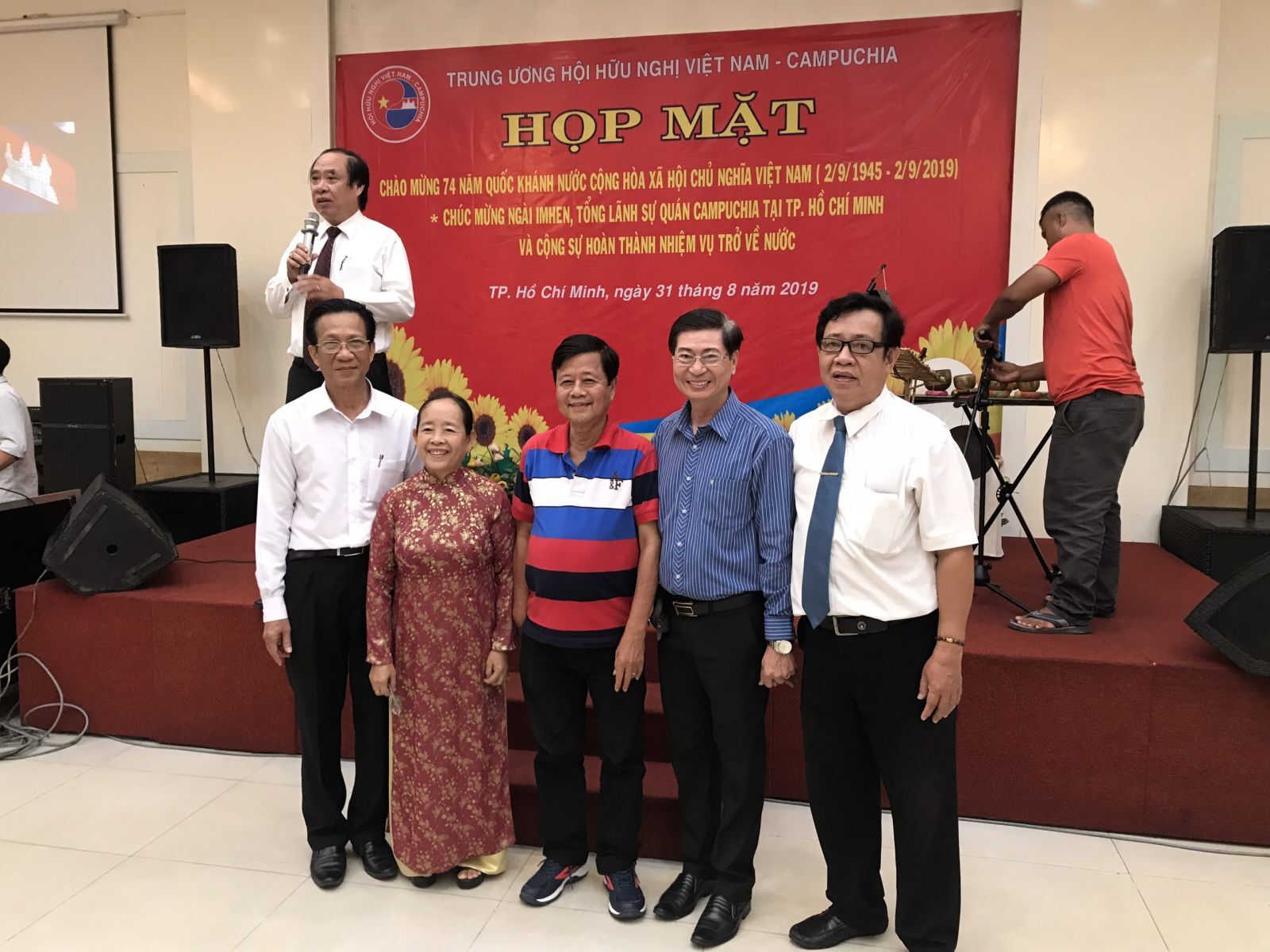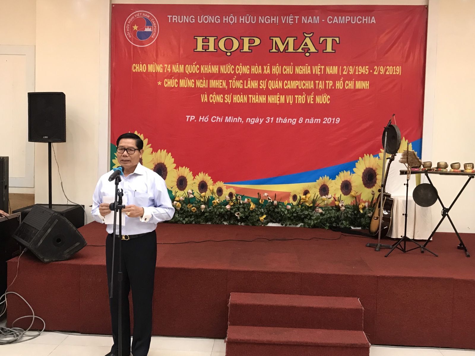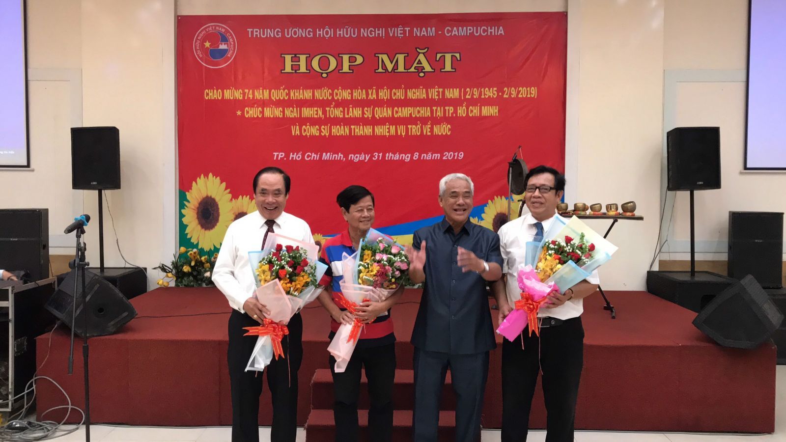 VNHN -Tối ngày 31/8, tịa Nhà khách T.78 (Quận 3, TP.HCM), Thường trực phía Nam Hội Hữu nghị Việt Nam - Campuchia tổ chức họp mặt mừng Quốc khánh nước CHXHCN Việt Nam (02/9/1945 - 02/9/2019); Đồng thời chúc mừng Ngài IMHEN - Tổng Lãnh sự Campuchia tại TP Hồ Chí Minh và Cộng sự hoàn thành nhiệm vụ trở về nước ...