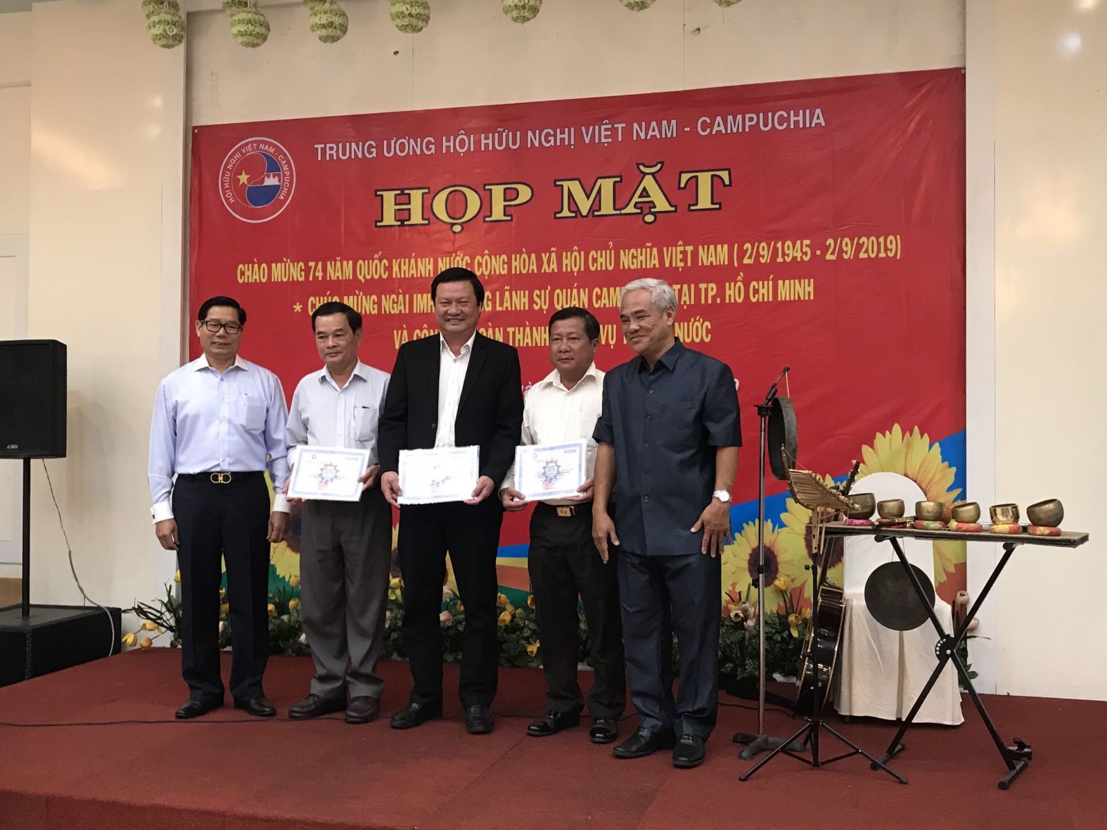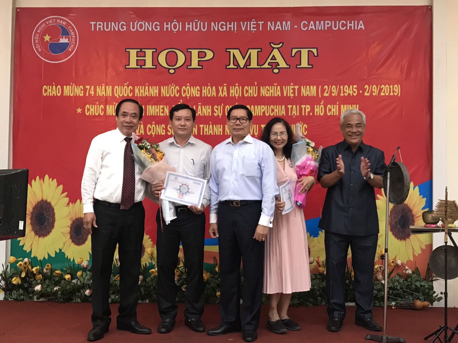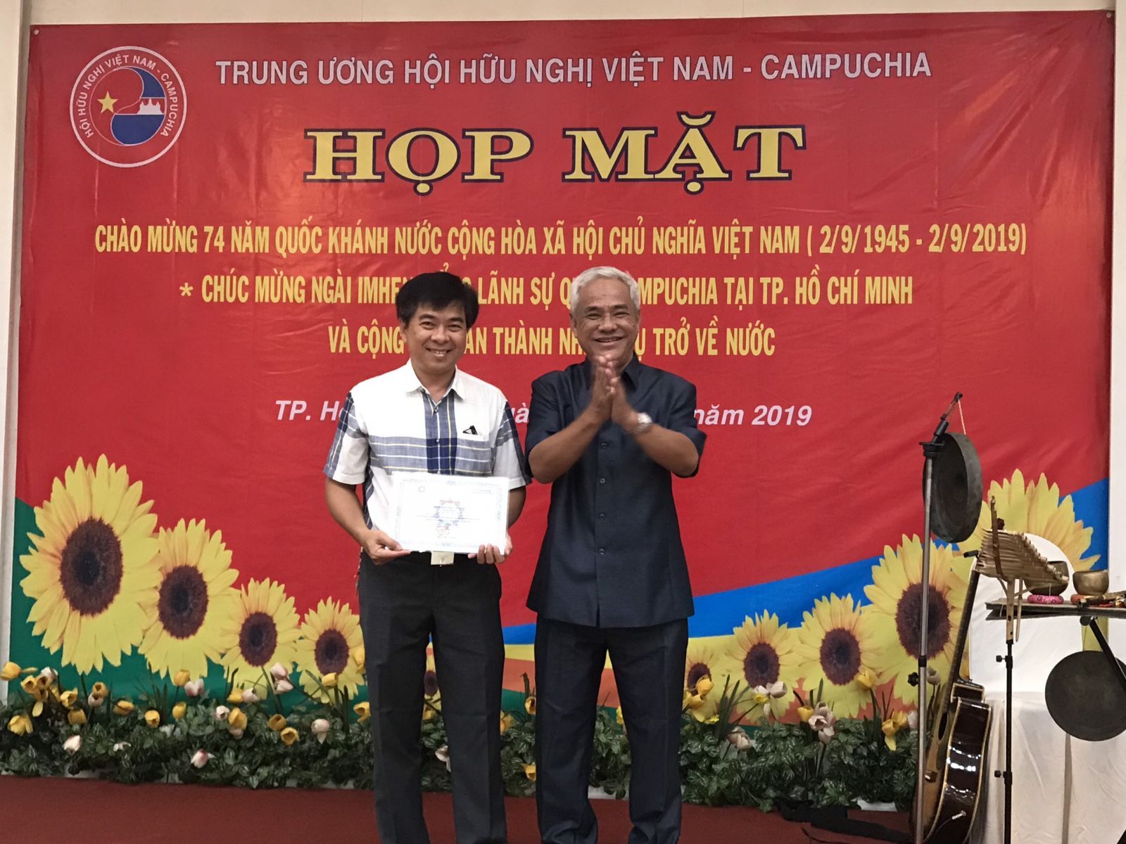 VNHN -Tối ngày 31/8, tịa Nhà khách T.78 (Quận 3, TP.HCM), Thường trực phía Nam Hội Hữu nghị Việt Nam - Campuchia tổ chức họp mặt mừng Quốc khánh nước CHXHCN Việt Nam (02/9/1945 - 02/9/2019); Đồng thời chúc mừng Ngài IMHEN - Tổng Lãnh sự Campuchia tại TP Hồ Chí Minh và Cộng sự hoàn thành nhiệm vụ trở về nước ...