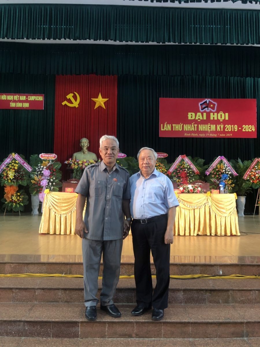 Ông Vũ Mão (bên phải) - Chủ tịch Trung ương Hội Hữu nghị Việt Nam-Campuchia và TS. Lê Hồng Liêm - Phó Chủ tịch TW Hội.