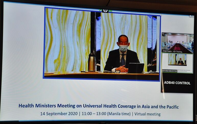 Hội nghị trực tuyến Bộ trưởng Y tế về Bao phủ sức khỏe toàn dân (UHC) ở châu Á và Thái Bình Dương do Tổ chức Y tế Thế giới (WHO) khu vực Tây Thái Bình Dương, WHO khu vực Đông-Nam châu Á và Ngân hàng Phát triển châu Á (ADB) đồng tổ chức. Đây là cơ hội để chia sẻ kinh nghiệm và các giải pháp mang tính sáng tạo nhằm tăng cường huy động tài chính cho UHC trong bối cảnh COVID-19. Hội nghị trực tuyến có sự tham gia của Giám đốc WHO Tây Thái Bình Dương TS.Takeshi Kasai, Giám đốc WHO Đông-Nam châu Á TS. Poonam Singh cùng lãnh đạo Bộ Y tế các quốc gia thành viên.