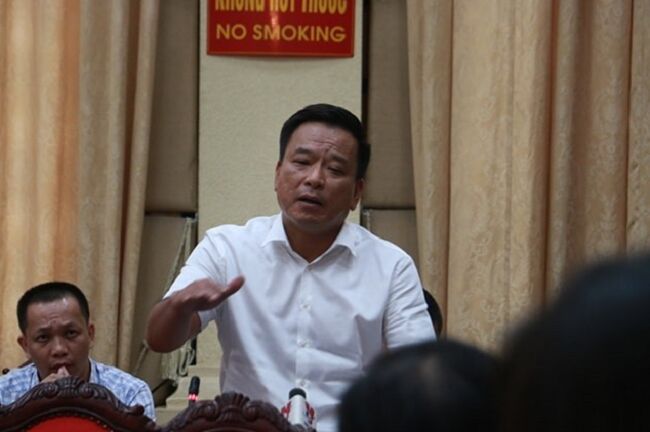 Ông Võ Tiến Hùng trả lời báo chí về việc xả nước hồ Tây ra sông Tô Lịch (Ảnh: sgpg.org.vn)