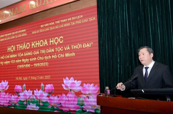 Phát biểu khai mạc và đề dẫn Hội thảo, GS,TS Lê Văn Lợi nêu rõ: Hội thảo có ý nghĩa thiết thực để thành kính tưởng nhớ, tri ân, làm rõ thêm công lao, cống hiến của Chủ tịch Hồ Chí Minh đối với sự nghiệp cách mạng của Đảng, dân tộc Việt Nam. Đây cũng là dịp để đẩy mạnh nghiên cứu, quán triệt sâu sắc hơn về tầm vóc, giá trị vô cùng to lớn và quý giá của di sản Hồ Chí Minh; bồi dưỡng, giáo dục lý tưởng và truyền thống cách mạng cho cán bộ, đảng viên và các tầng lớp nhân dân, đặc biệt là thế hệ trẻ trong công cuộc xây dựng, phát triển và bảo vệ Tổ quốc giai đoạn hiện nay. Đồng thời khẳng định, di sản của Chủ tịch Hồ Chí Minh để lại cho Đảng ta, nhân dân ta vô cùng to lớn và quý giá, là kim chỉ nam, ánh sáng soi đường, dẫn dắt dân tộc Việt Nam vững bước trên con đường độc lập dân tộc và chủ nghĩa xã hội, hiện thực hóa khát vọng xây dựng, phát triển đất nước ngày càng phồn vinh, hạnh phúc.