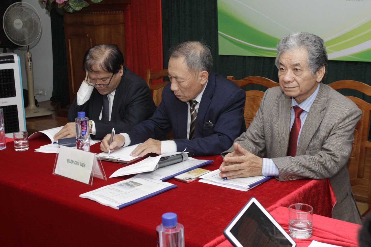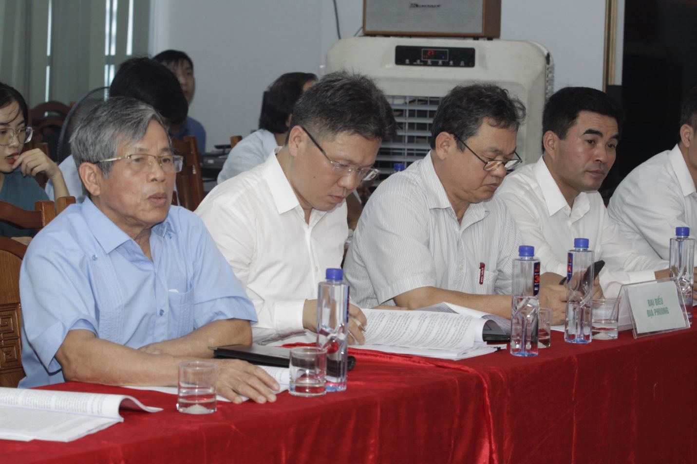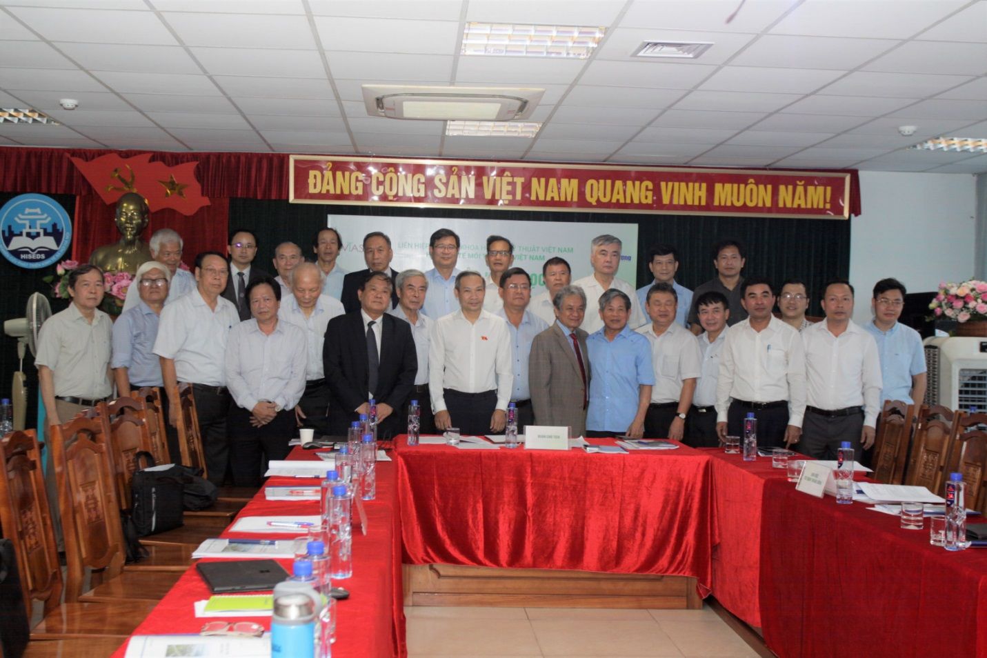 Chủ trì Hội thảo gồm PGS.TS Lưu Đức Hải - Chủ tịch Hội Kinh tế Môi trường Việt Nam; PGS.TS Trương Mạnh Tiến - Ủy viên Đoàn Chủ tịch Liên hiệp các Hội Khoa học và Kỹ thuật Việt Nam, Tổng Biên tập Tạp chí Kinh tế Môi trường; PGS.TS Nguyễn Thế Chinh - Phó Chủ tịch Hội Kinh tế Môi trường Việt Nam; GS.TS Hoàng Xuân Cơ - Tổng Thư ký Hội Kinh tế Môi trường Việt Nam.