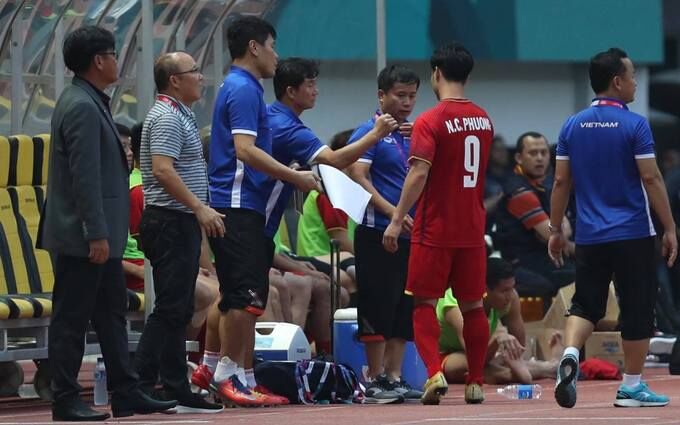 Phút thứ 81, Công Phượng có dấu hiệu bị đau và HLV Park Hang Seo đã quyết định rút anh ra, thay thế bằng Đức Chinh. Trong trận đấu này, HLV Park Hang Seo đã thể hiện rõ quyết tâm thực hiện lối chơi tấn công với việc bố trí sơ đồ Công Phượng, Quang Hải và Văn Quyết đá ngay sau mũi tấn công Anh Đức.