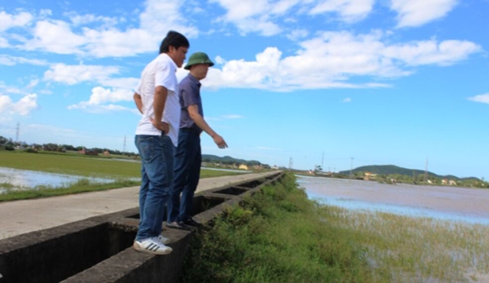 Phó Chủ tịch huyện Hưng Nguyên Lê Phạm Hùng kiểm tra hậu quả mưa lũ tại các xã bị thiệt hại