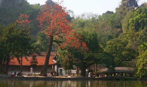 Chùa Thầy đẹp cổ kính bên tháng 3 hoa Gạo nở