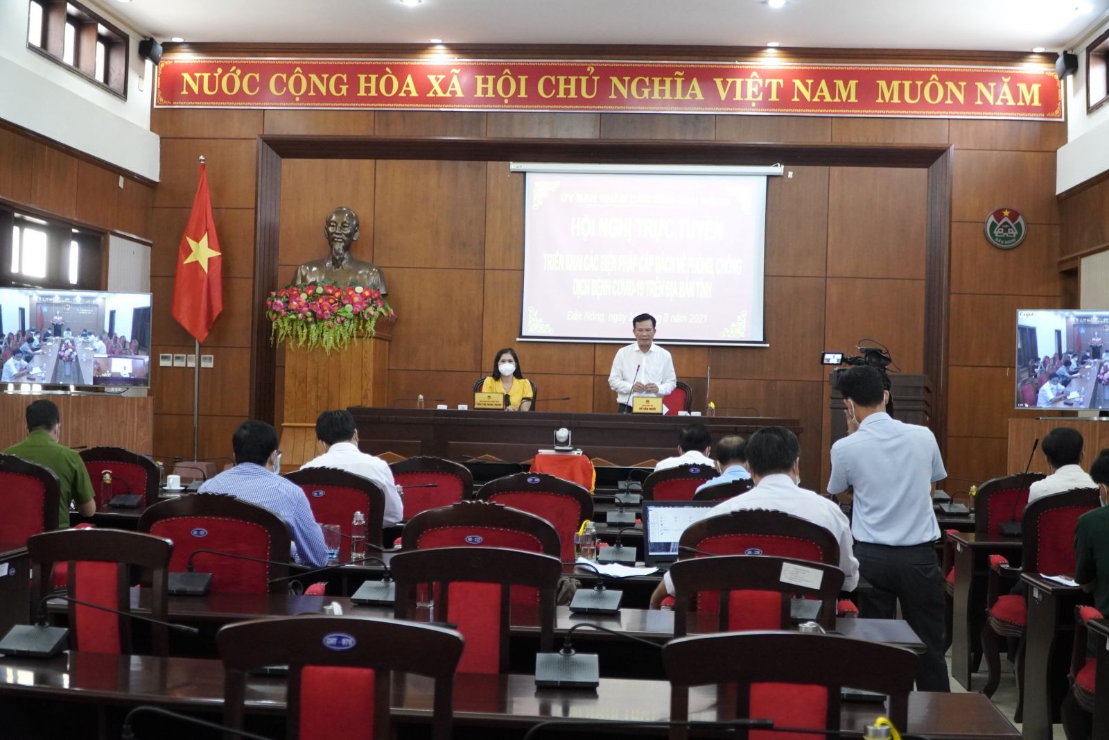 Sáng 21/8, các đồng chí: Hồ Văn Mười, Phó Bí thư Tỉnh ủy, Chủ tịch UBND tỉnh, Trưởng Ban Chỉ đạo phòng, chống dịch bệnh ở người (gọi tắt là Ban Chỉ đạo) tỉnh Đắk Nông; Tôn Thị Ngọc Hạnh, Phó Chủ tịch UBND tỉnh, Phó Trưởng ban Thường trực Ban Chỉ đạo tỉnh chủ trì cuộc họp trực tuyến với Ban Chỉ đạo huyện Cư Jút về công tác phòng, chống dịch Covid-19.