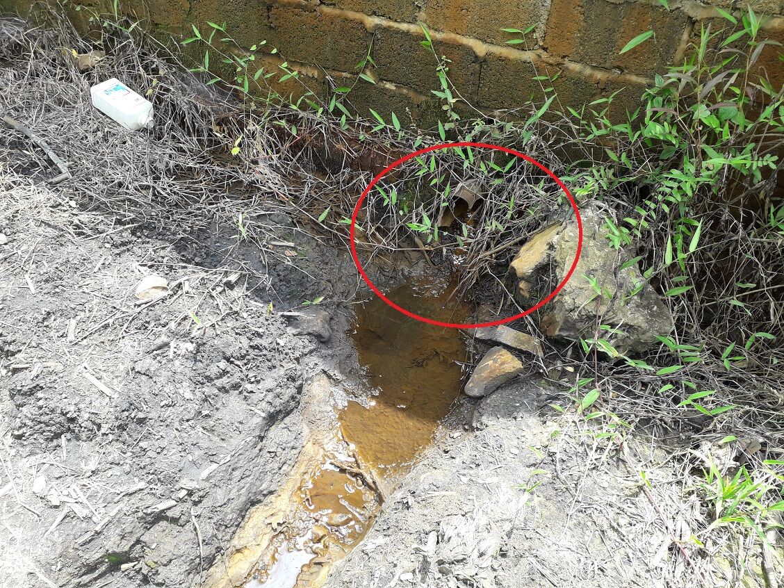 Đáng nói, mặt sau tường nơi tiếp giáp các bể chứa, doanh nghiệp đã đặt sẵn ống dẫn xả thẳng ra ngoài con suối của người dân. Lượng nước trong các bể chứa tại thời điểm ghi nhận có màu đỏ au, trên mặt nước xuất hiện nhiều lớp váng, hầu hết các bể đều trong trạng thái đầy, chỉ cần dồn thêm chút nước là có thể xả thẳng theo đường ống ra ngoài.