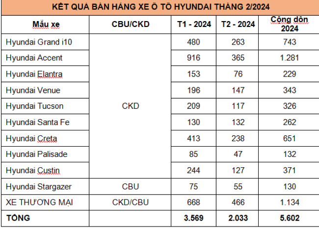 Tháng 2 năm 2024 là thời điểm nghỉ Tết nguyên đán, dẫn đến doanh số của Hyundai nói riêng cũng như toàn thị trường nói chung suy giảm. Khi qua thời gian nghỉ Tết, thị trường được ổn định trở lại sẽ mang kì vọng vào mức doanh số tăng trưởng cao hơn trong các tháng kinh doanh tiếp theo.