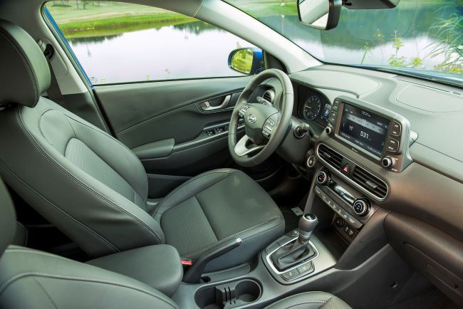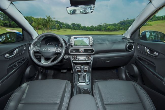Nội thất xe hiền lành hơn ngoại thất. Nguyên lý thiết kế nội thất HMI (Human Machine Interface) tiếp tục được áp dụng với nhiều cải tiến mới giúp Kona sở hữu không gian nội thất tiện nghi nhưng vẫn thân thiện dễ sử dụng.