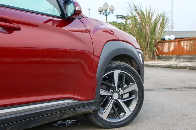 Đèn LED ban ngày định vị DRL mắt hí thay vị trí đèn pha. Phía sau cũng là sự phá cách với xinhan đặt dưới, đèn hậu dạng LED kéo dài vân hình đôi mắt ấn tượng. Lazang 18 inch Diamond Cut. Kích thước xe DxRxC là 4.165 x 1.800 x 1.565 (mm), chiều dài cơ sở 2.600mm. Kona có góc tiếp trước 17º và góc thoát sau đạt 29º, khá ổn cho 1 mẫu SUV cỡ nhỏ dù khoảng sáng hơi hạn chế chỉ 170mm.
