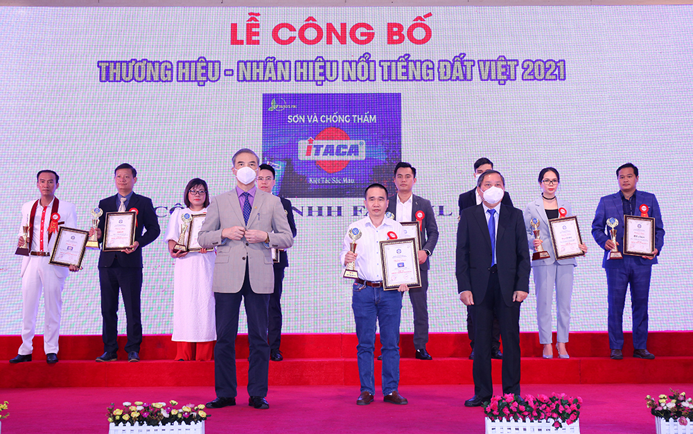 Đại diện thương hiệu ITACA nhận chứng nhận, biểu trưng tại chương trình “Thương hiệu - Nhãn hiệu nổi tiếng đất Việt” năm 2021