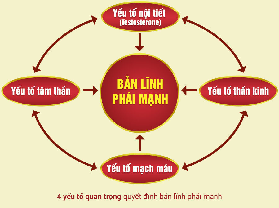 Mất đi bản lĩnh phái mạnh là tình trạng suy giảm khả năng tình dục, kéo theo các biểu hiện: xuất tinh sớm, rối loạn cương dương, giảm ham muốn, … Các chuyên gia chỉ ra 4 “yếu tố” quan trọng giúp đấng mày râu khẳng định “bản lĩnh phái mạnh”. Nếu mất đi một trong các yếu tố quan trọng này này sẽ khiến cho quý ông dễ bị “bẽ mặt” khi “giao ban”. Đó là các yếu tố nội tiết, thần kinh, mạch máu và tâm thần.