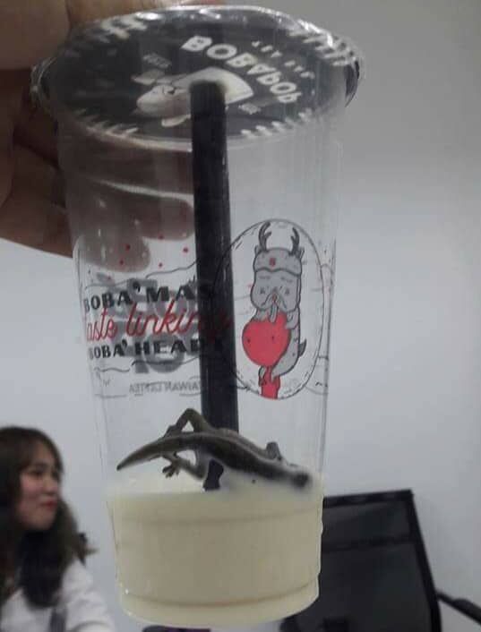 Cốc trà sữa có thạch sùng (hình ảnh: FB của khách hàng)