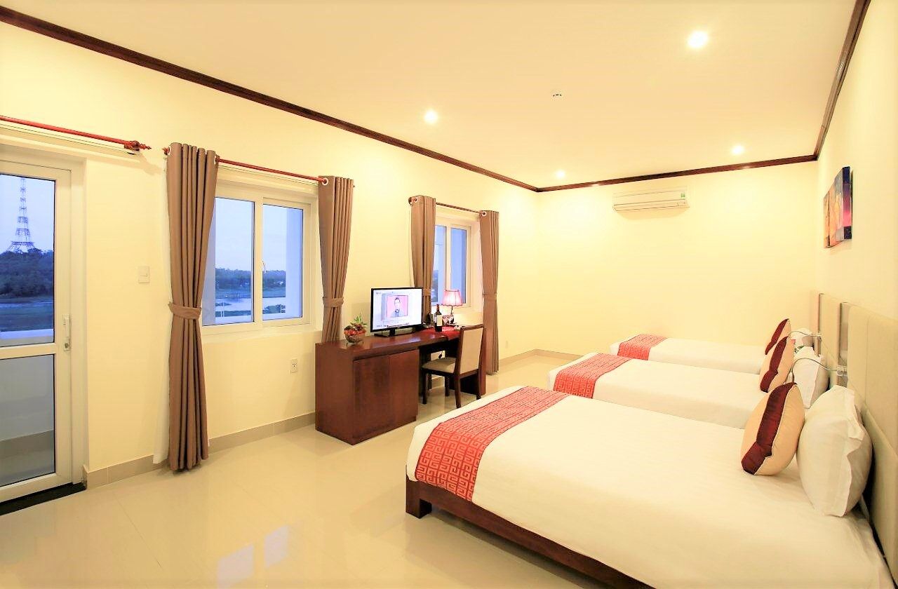 Được thiết kế dọc bờ sông với hướng nhìn ra con sông Bàn Thạch thơ mộng, khách sạn ven sông Bàn Thạch được xây dựng với quy mô 7 tầng, bao gồm 98 phòng, 07 khu Villa cao cấp với hồ bơi riêng, cùng các phòng hội thảo, nhà hàng, Spa, hồ bơi, 02 sân tennis…đáp ứng đầy đủ các dịch vụ của một khách sạn rất đẳng cấp.