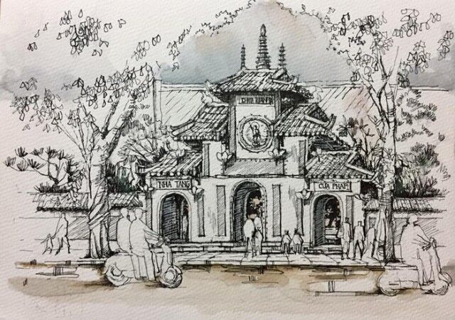 Một tác phẩm của nhóm Ký họa đô thị Hà Nội tại triển lãm