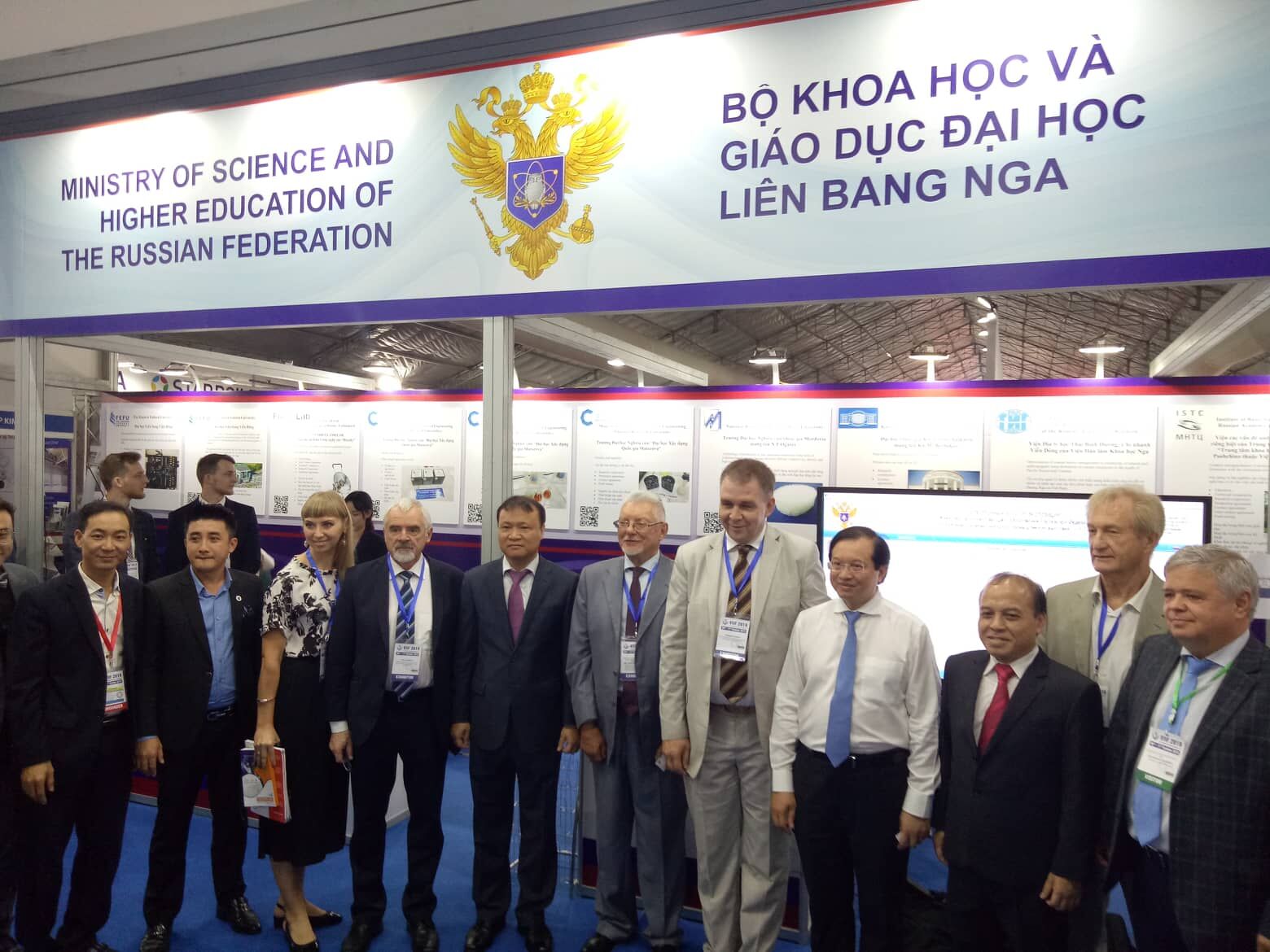 Hai Thứ trưởng Bộ Công Thương và Bộ VHTT&DL tham quan, chụp ảnh lưu niệm tại gian hàng của Bộ Khoa học và Giáo dục Đại học Liên Bang Nga.