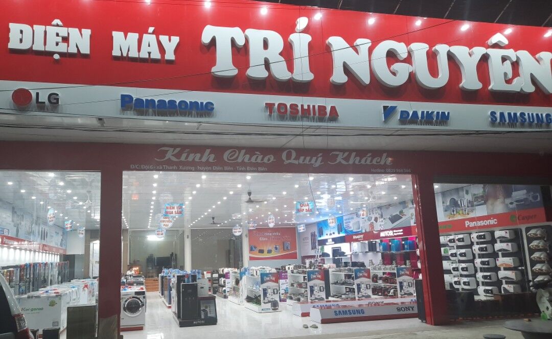 Điện máy Trí Nguyên có địa chỉ tại Đội 6 xã Thanh Xương, huyện Điện Biên, tỉnh Điện Biên có tổng diện tích gần 600m2, được thiết kế chuyên nghiệp giúp người tiêu dùng dễ dàng nhận diện các mặt hàng điện tử, điện lạnh, đồ gia dụng được bày bán tại đây. Bên cạnh các thương hiệu lớn như Samsung, LG, Toshiba, Panasonic, Daikin… thì Điện máy Trí Nguyên còn phân phối các sản phẩm bếp từ, bếp gas, máy lọc nước và các thiết bị nhà bếp khác mang thương hiệu Nasyo Việt Nam.