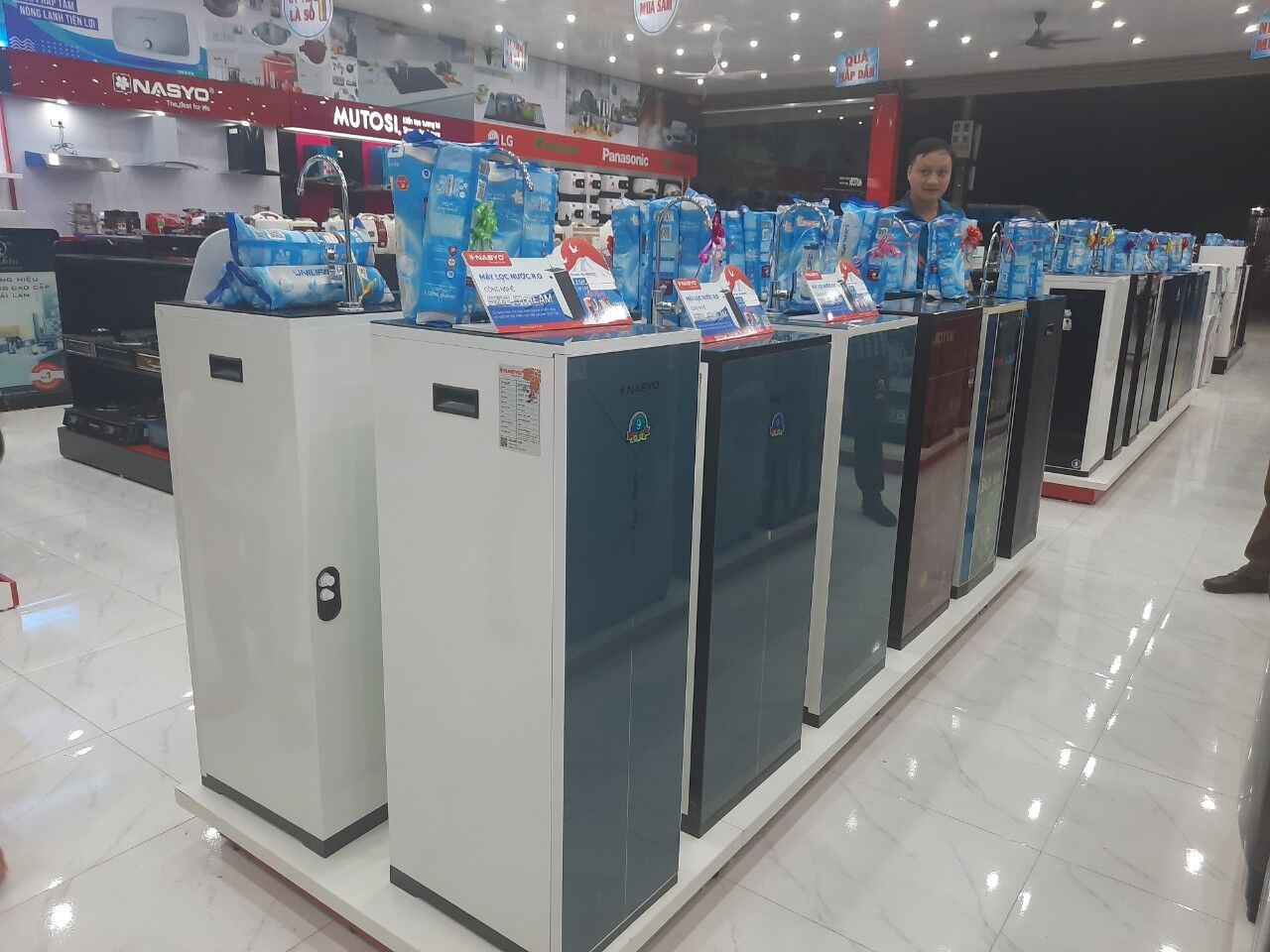 Sản phẩm máy lọc nước công nghệ RO - Side Stream và bếp gas dương kính của Nasyo được bày bán tại Điện máy Trí Nguyên