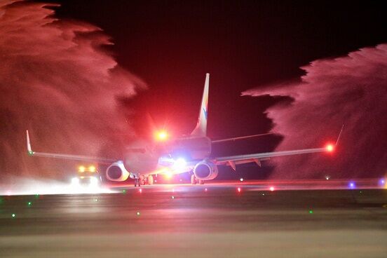 Tại lễ đón chuyến bay quốc tế đầu tiên, sân bay Vân Đồn đã tổ chức nghi thức phun vòi rồng và cắt băng khai trương đường bay mới Vân Đồn - Thẩm Quyến. Ngoài đại diện hãng bay và sân bay, đến tham dự buổi lễ có ông Đặng Huy Hậu, Phó Chủ tịch Thường trực UBND tỉnh Quảng Ninh cùng đại diện Sở ban ngành địa phương.