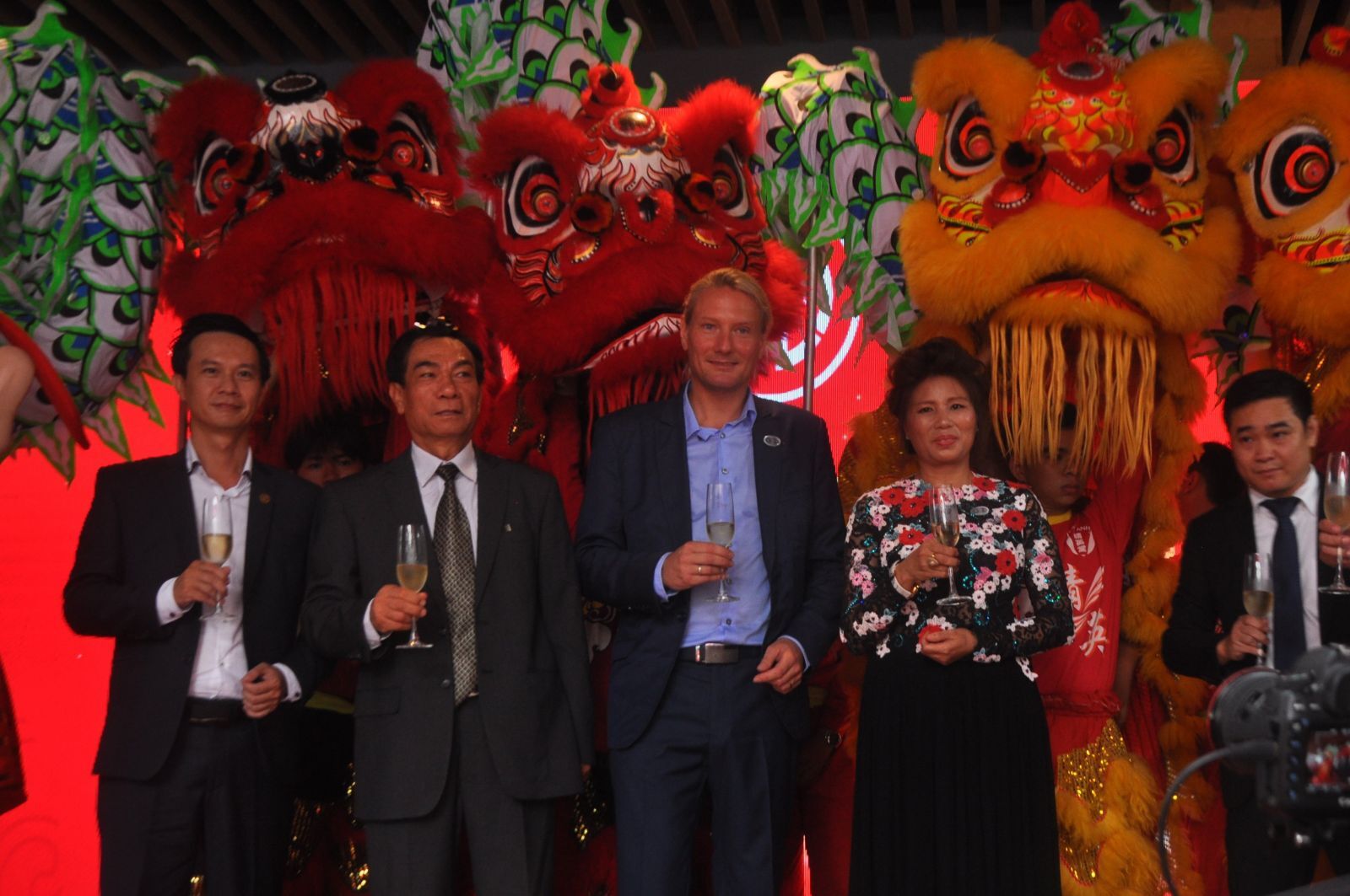 Bà Trần Thị Bích Thủy - Tổng Giám đốc Công ty Long Thủy 3D và ông Jan Michael Pasboel - Chủ tịch Tập đoàn GCC cùng các đại biểu cắt băng khai trương và nâng ly chúc mừng sự kiện