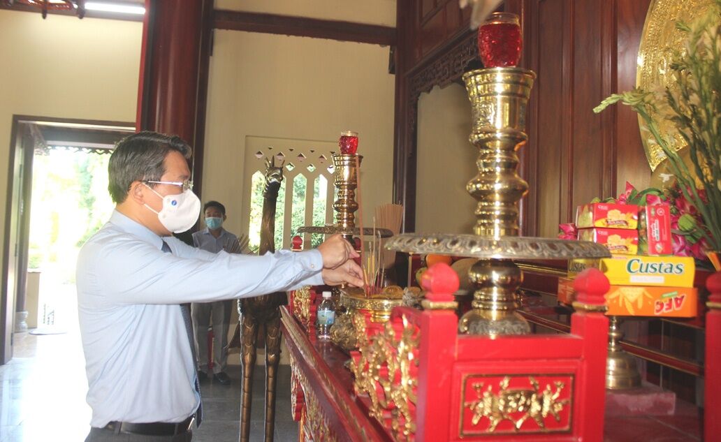 Ủy viên Trung ương Đảng, Bí thư Tỉnh ủy, Nguyễn Hải Ninh dâng hương tại Đền thờ Bác Hồ và các Anh hùng liệt sĩ tại Nghĩa trang Liệt sĩ Hòn Dung.(ảnh:BKH)