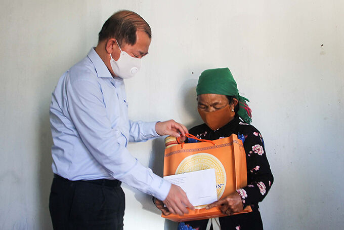 Tại đây, Đồng chí Nguyễn Anh Tuấn đã thay mặt lãnh đạo tỉnh trao quà của Tỉnh ủy - HĐND - UBND - Ủy ban MTTQ Việt Nam tỉnh trao tặng các gia đình, mỗi phần quà trị giá 1,3 triệu đồng.