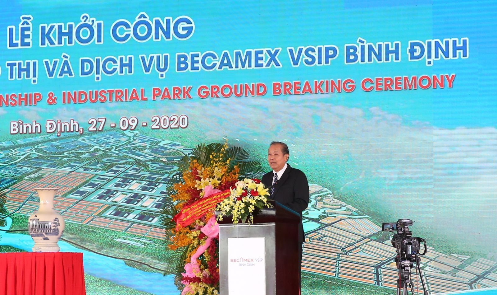 VNHN - Ngày 27/9 tại Bình Định, Công ty cổ phần Becamex Bình Định chính thức khởi công Khu công nghiệp-đô thị-dịch vụ Becamex VSIP Bình Định. Ủy viên Bộ Chính trị, Phó Thủ tướng Thường trực Chính phủ Trương Hòa Bình tới dự.