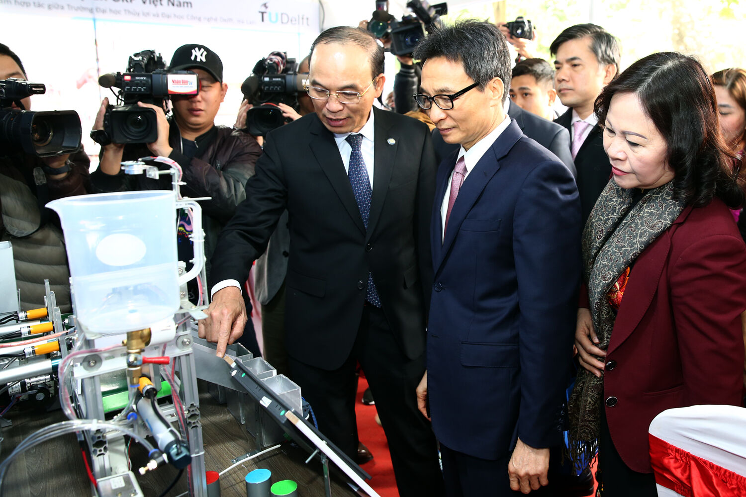 Phó Thủ tướng Vũ Đức Đam thăm gian hàng start-up của sinh viên Trường đại học Thủy lợi. Ảnh: VGP/Đình Nam