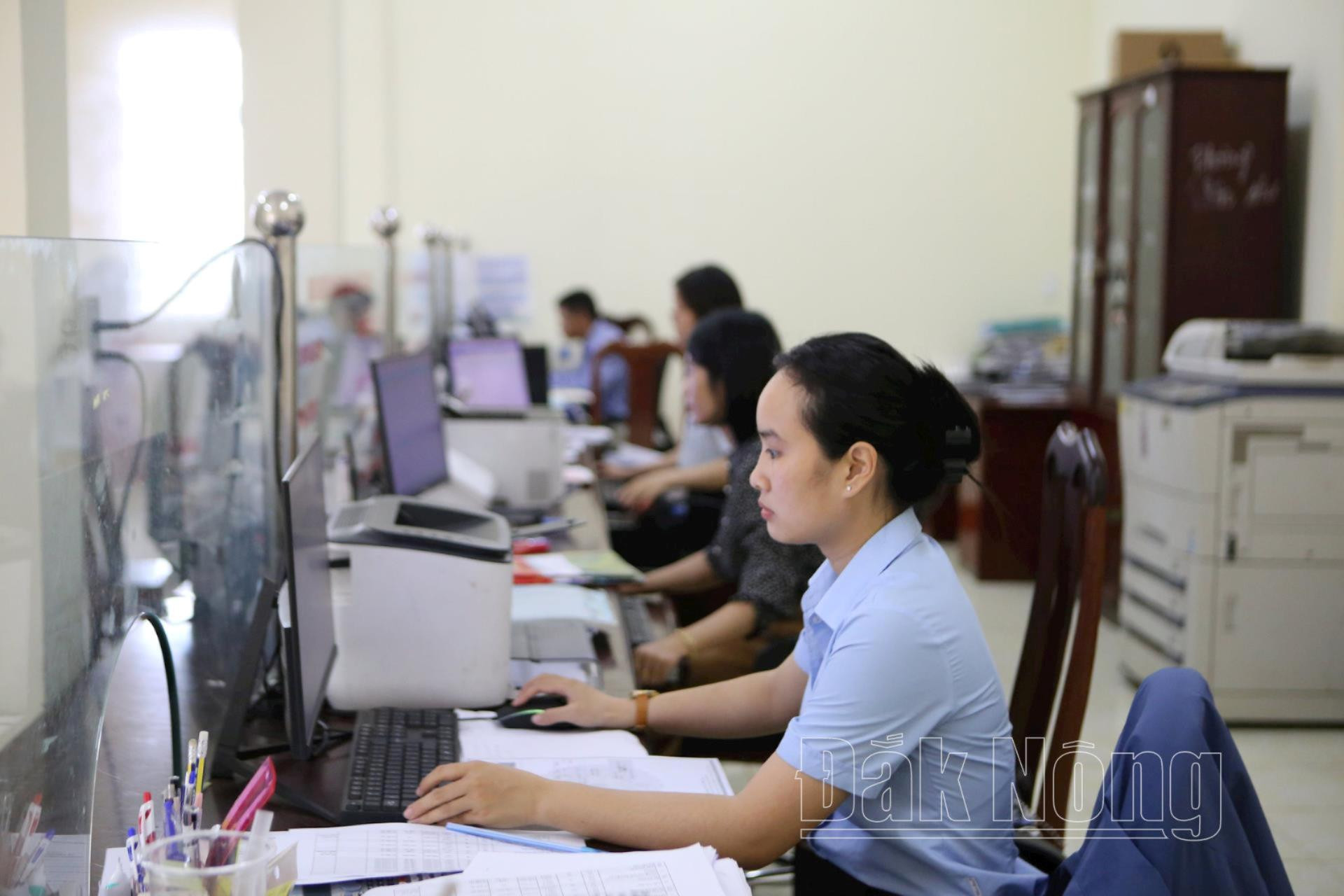Giải quyết thủ tục hành chính tại Bộ phận Một cửa huyện Đắk Glong. Ảnh: Báo Đắk Nông
